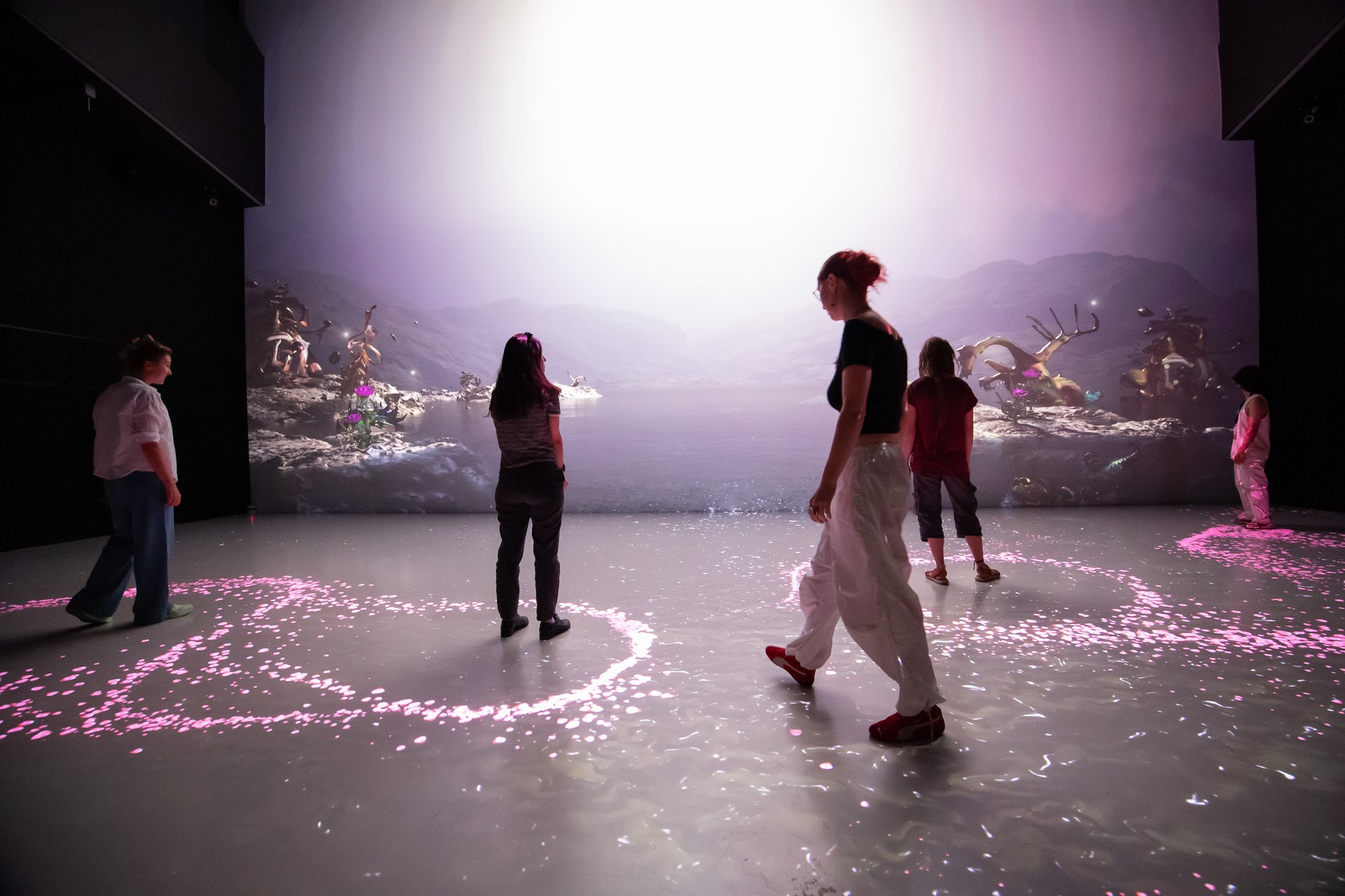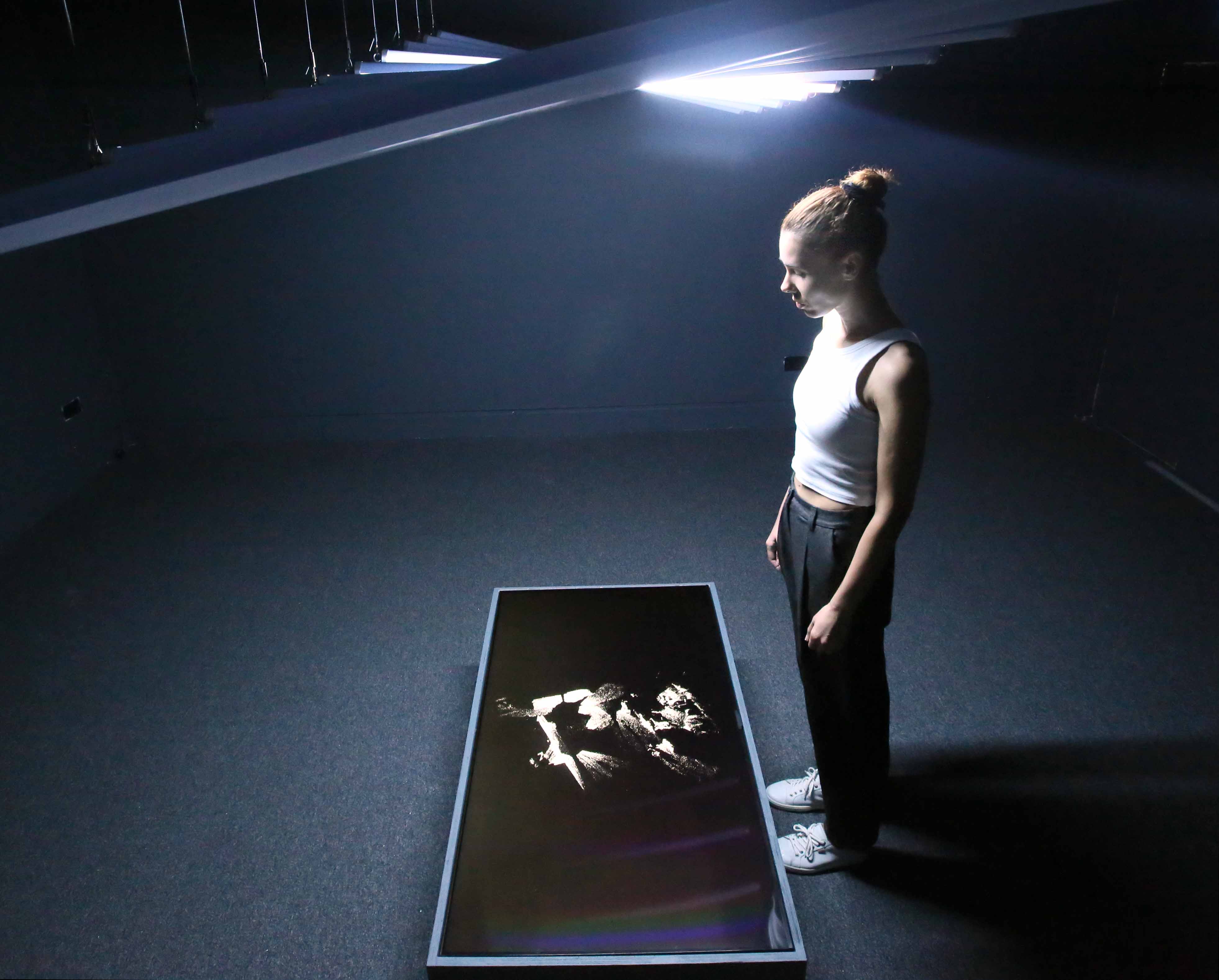 A durational audio-visual projection work that changes and reacts to the presence of people, the installation immerses the audience and gives them a sense of agency while viewing the work.